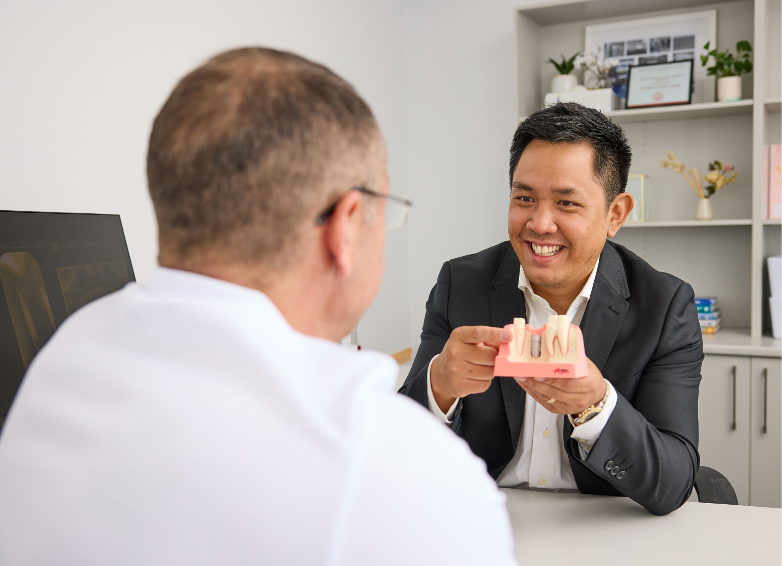 If you have missing teeth, or are about to lose teeth, then the replacement options will also be discussed prior to removing any teeth. Dental implants are possible even for patients with a history of gum disease provided it is done in the correct way.